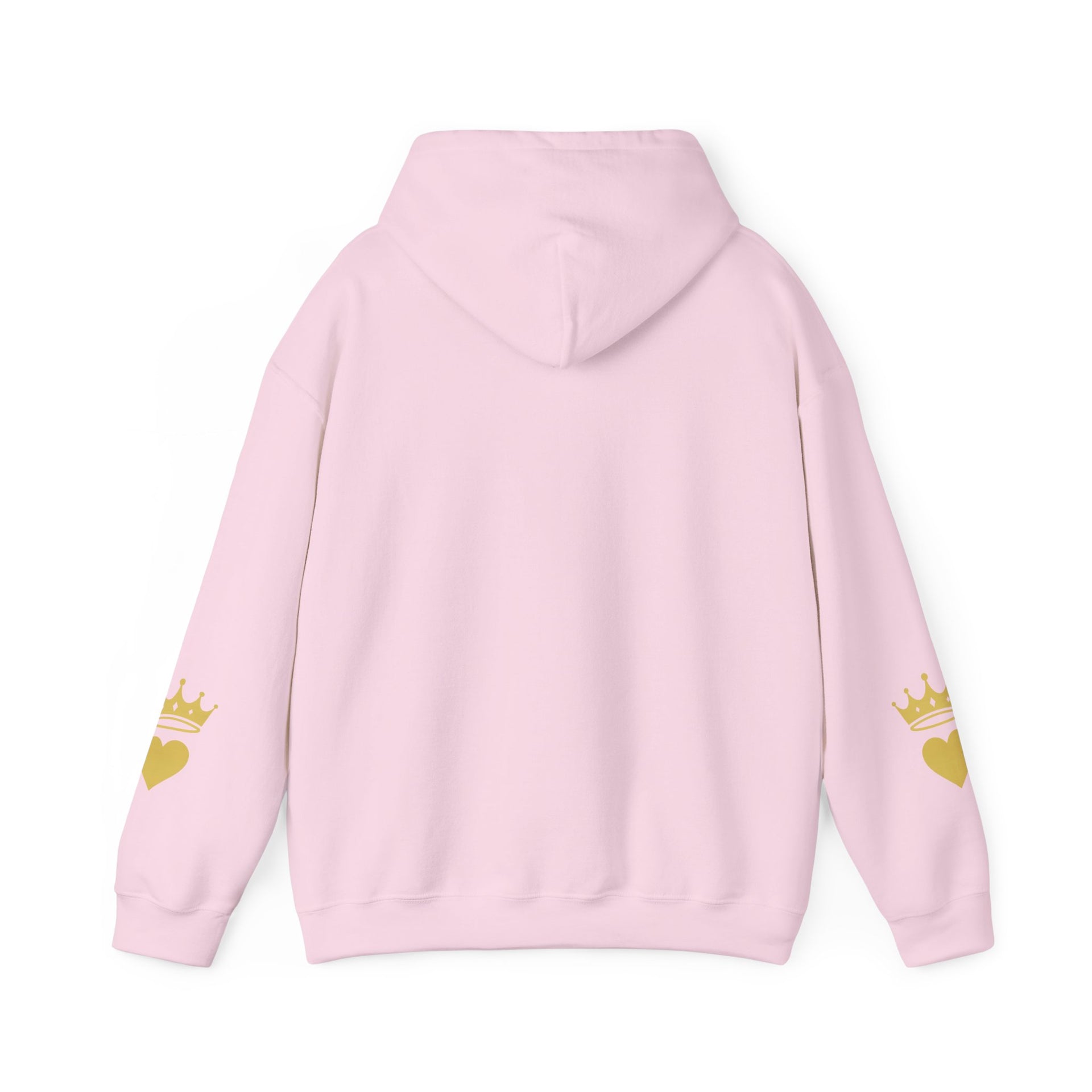 Christian Hoodie - "Jesus Over Everything" Pink Script with Gold Crown & Heart Sleeve Design