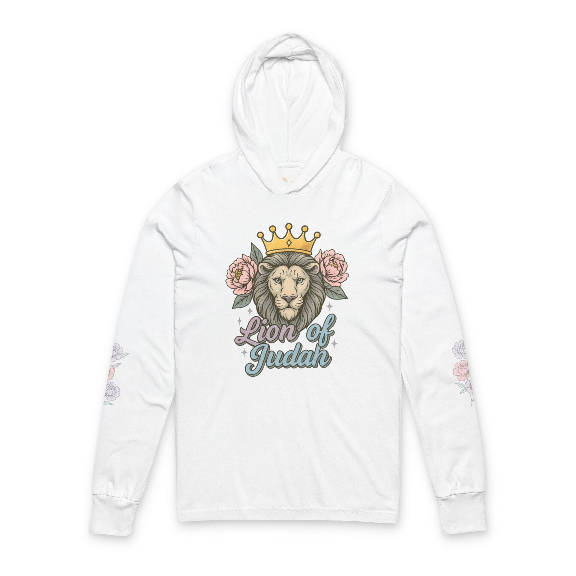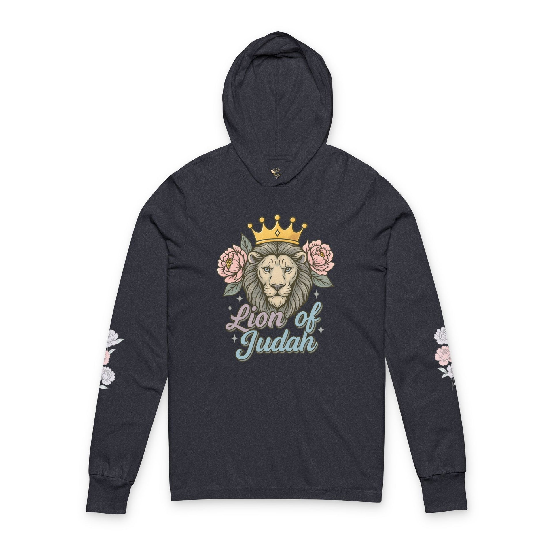 Bold, soft, and effortlessly wearable — this Lion of Judah hooded long sleeve tee is designed for believers who like their faith to travel with them. Made from premium 100% airlume combed and ringspun cotton, it feels lightweight, breathable, and smooth against the skin. The “V” crossover neckline gives it a modern, stylish look, while the hood adds a relaxed, cozy touch for everyday wear.